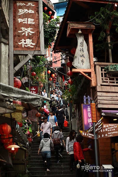 日本動(dòng)畫(huà)大師宮崎駿于2001年發(fā)表的動(dòng)畫(huà)電影《千與千尋》中的街道,便是以九份為原型,入夜后,路上紅色的燈籠亮起來(lái),沿著彎曲的街巷迤邐,路旁都是各色小吃店,饕客人頭攢動(dòng),這景象和《千與千尋》中的夜市街還真有些神似。